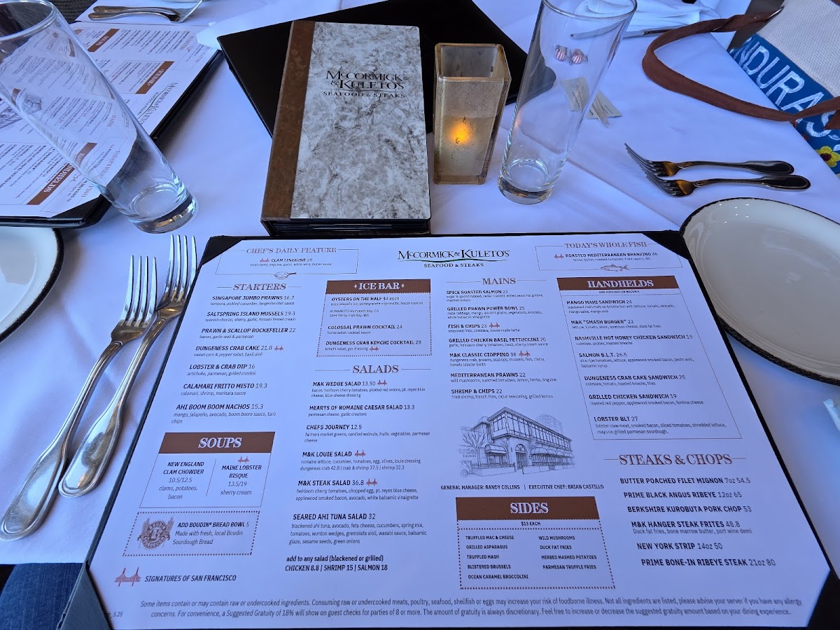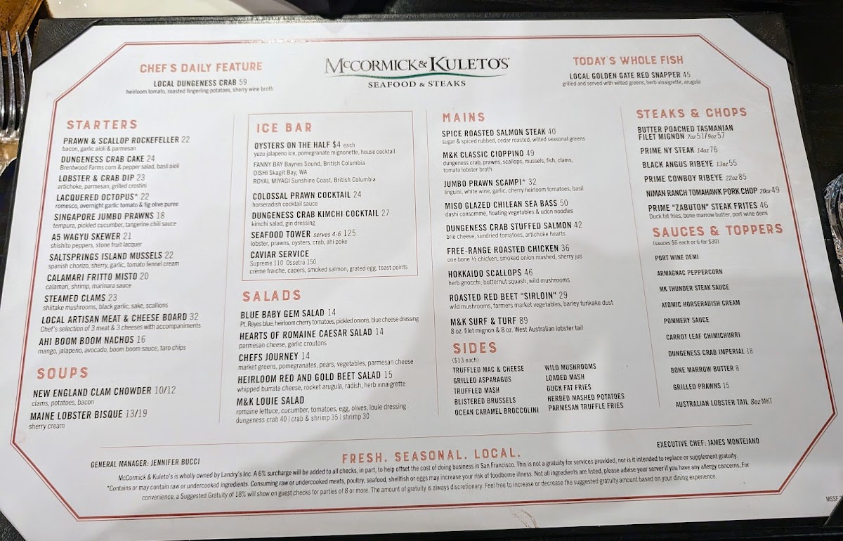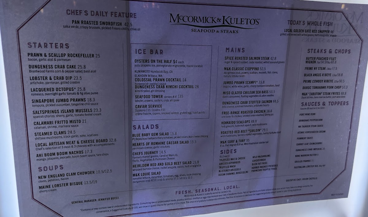 McCormick & Kuleto's Seafood & Steaks Menu